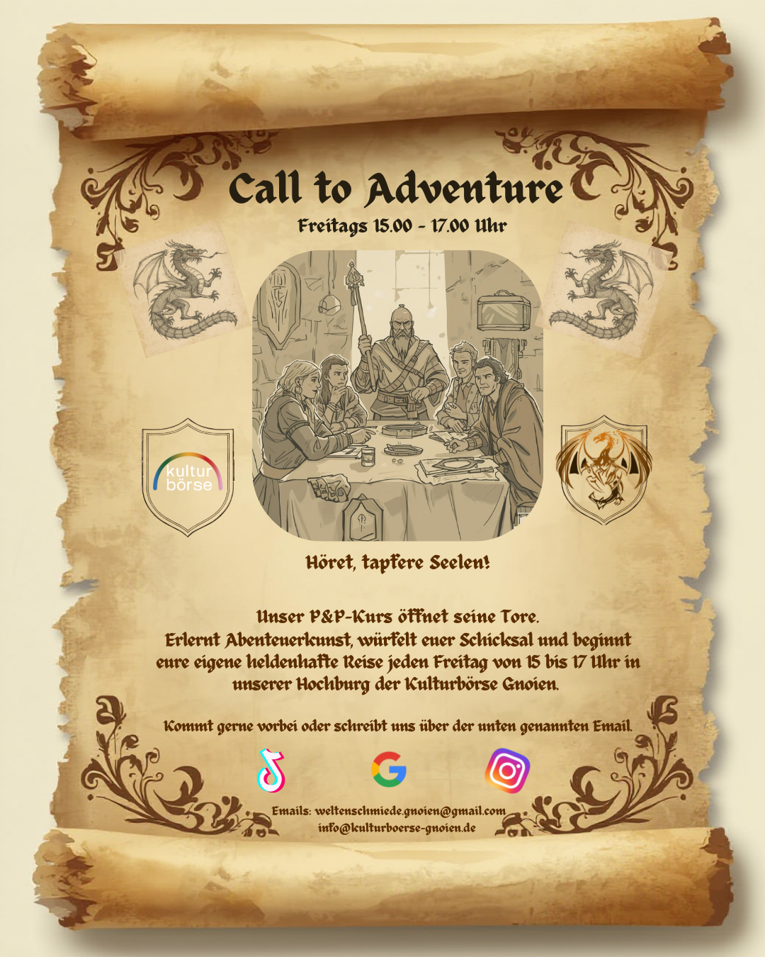 Engagierte Jugendliche öffnen ihren Pen and Paper Kurs und bringen euch das Regelwerk vom Pen-and-Paper-Rollenspiel Dungeons & Dragons bei.